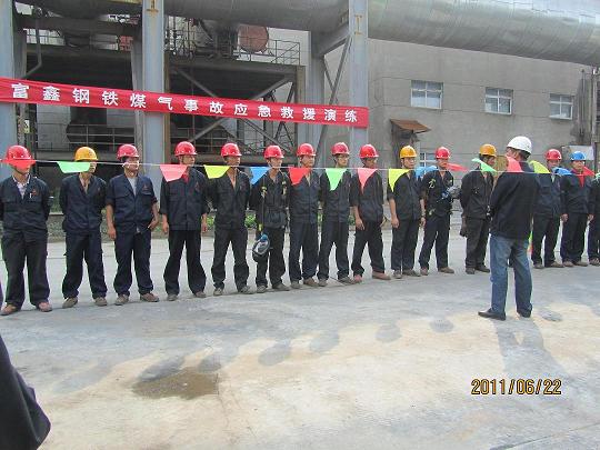 6月份公司开展煤气安全演练县安监局强局长和新港镇赵镇长一行到现场观摩...