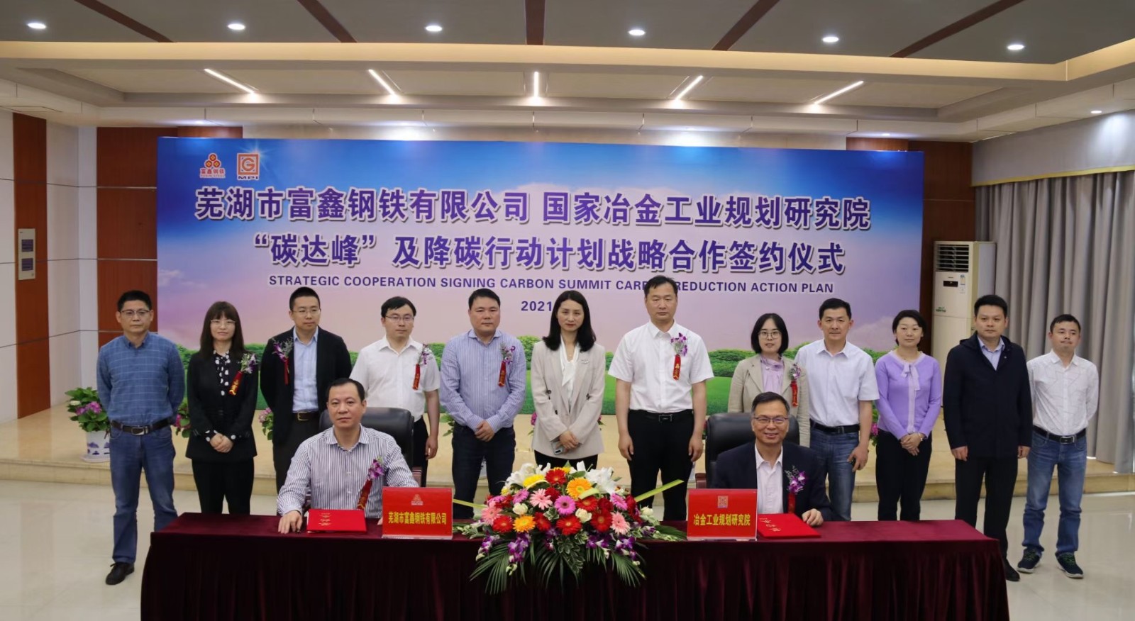 5月21日,芜湖市富鑫钢铁有限公司与国家冶金工业规划研究院“碳达峰及降碳行动”签约仪式在富鑫公司隆重举行。本次签约仪式活动,旨在国家提出“碳达峰”“碳中和”的目标愿景下,构建公司与冶金工业规划研究院在减排降碳方面的交流合作平台,共同探讨钢铁行业的发展趋势和未来机遇,分享技术创新和优秀实践,努力打造富鑫钢铁绿色发展的美好未来,为地方经济建设作出更大贡献。